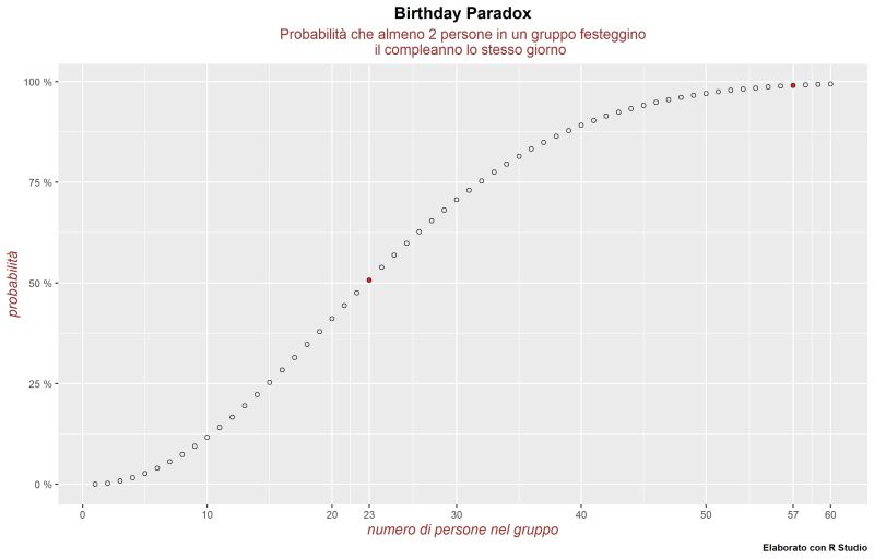 Il paradosso è strano e controintuitivo, ed è solo un “paradosso” perché il nostro cervello – che crede di essere abbastanza ferrato in matematica e statistica – in realtà sottovaluta il potere del calcolo esponenziale. Ci aspettiamo che le probabilità siano lineari e ci viene naturale pensare alla probabilità come il rapporto tra 23 (persone) su 365 (giorni), pari al 6,3%. Inoltre consideriamo solo gli scenari in cui siamo coinvolti in prima persona – focalizzandoci ad esempio solo sul nostro compleanno – con la conseguenza di arrivare a conclusioni affrettate basate su presupposti errati.