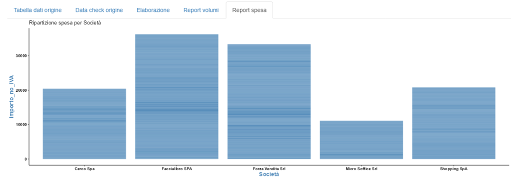 Oltre alle tabelle, in questo esempio vengono creati i grafici interattivi che consentono di ottenere rapidamente un report visivo sui volumi e sulla spesa.