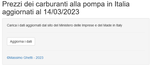 In una seconda tab vengono create le tabelle coi prezzi medi per tipo carburante e per provincia. Le tabelle possono essere scaricate per effettuare eventuali ulteriori elaborazioni.