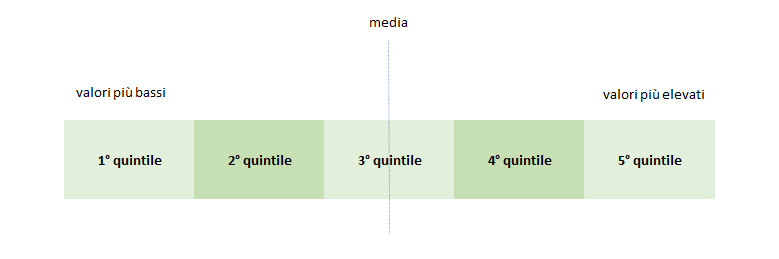 Un quintile è un valore statistico di un set di dati che rappresenta il 20% di una data popolazione; quindi, il primo quintile rappresenta il quinto più basso dei dati (dall’1% al 20%); il secondo quintile rappresenta il secondo quinto (dal 21% al 40%) e così via. I quintili vengono dunque utilizzati per creare dei punti di cut-off per una data popolazione; a seconda delle dimensioni della stessa, in alternativa si possono usare i quartili.