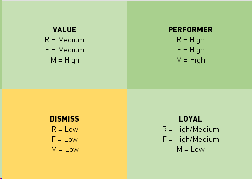 Valutando i tre parametri relativi alle transazioni di acquisto che lo compongono, possono essere ricavate preziose informazioni sulle abitudini dei clienti da utilizzare per sviluppare azioni mirate di vendita e marketing.